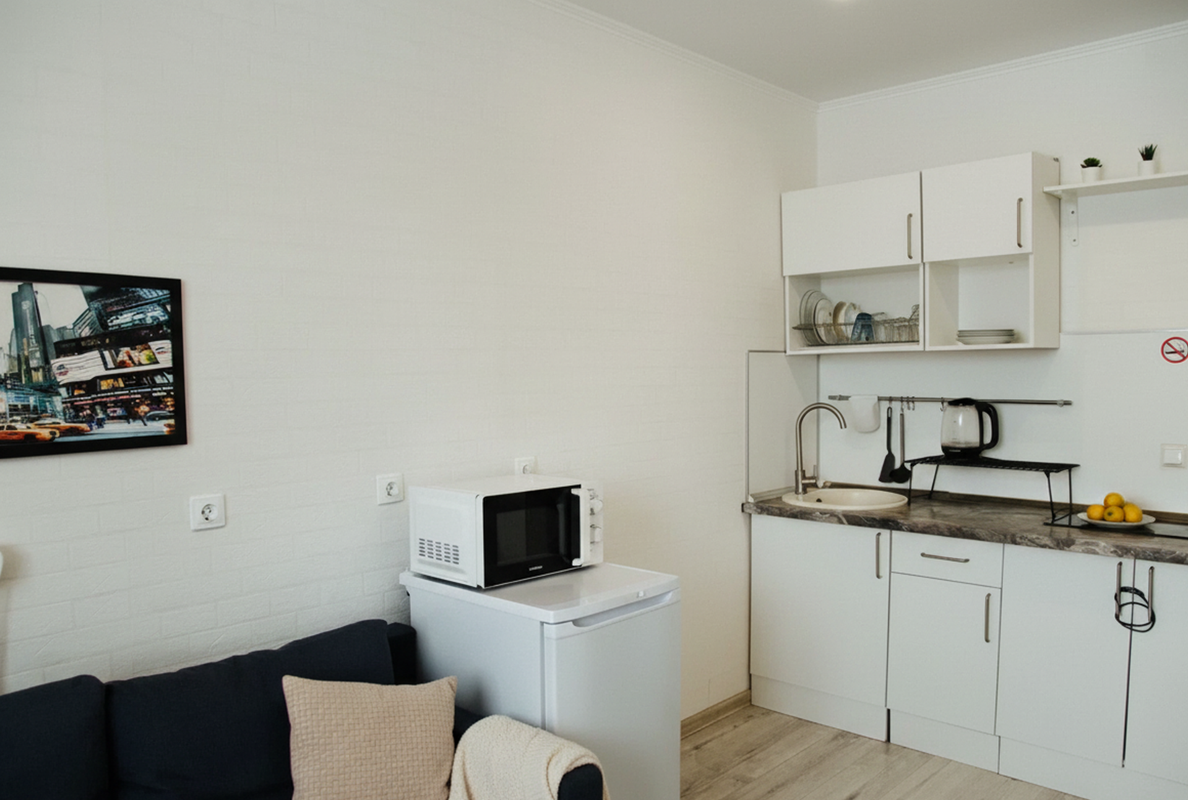 • Полностью оборудованная кухня с утюгом, микроволновкой, чайником, холодильником и феном