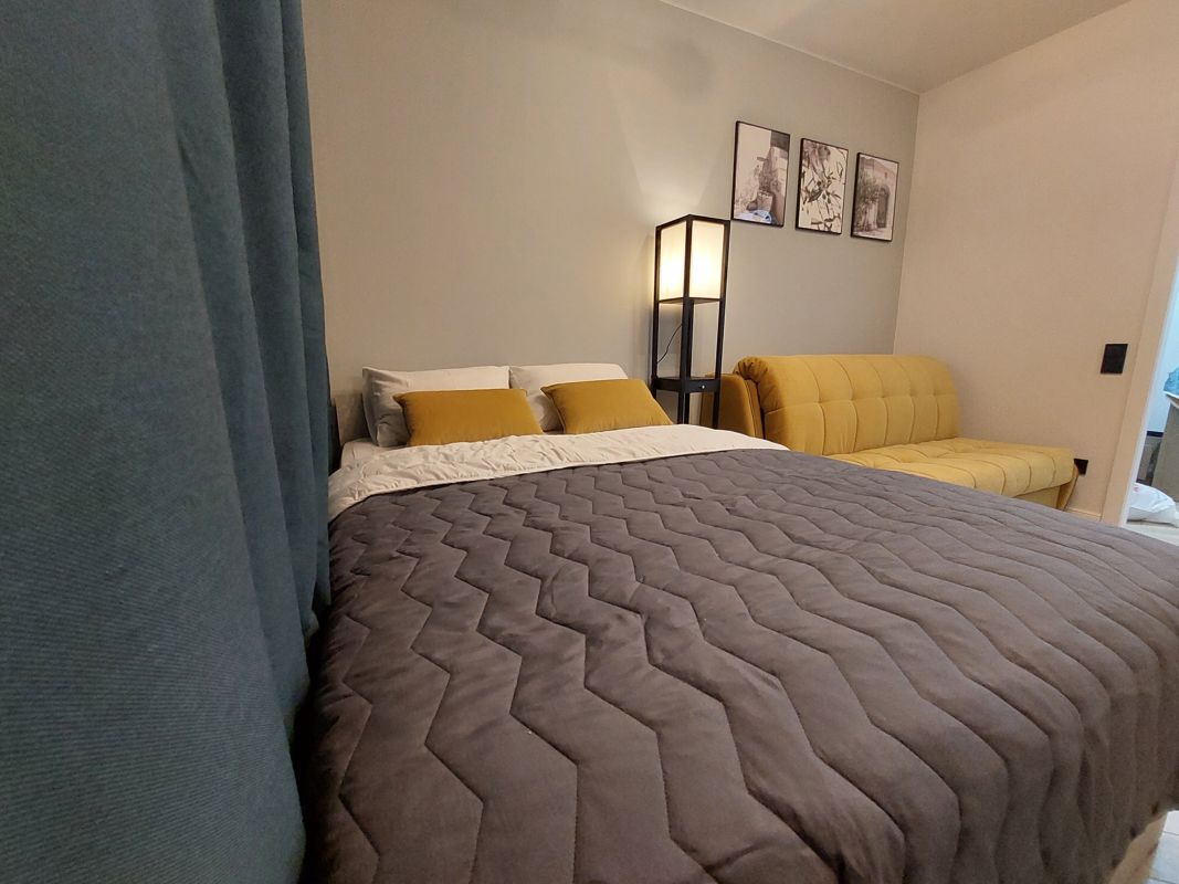 В квартире комфортно можно разместить 4 человека (2+2). У нас есть Двуспальная (140×200) кровать с ортопедическим матрасом + двухместный диван( 120×200), который раскладывается в удобное спальное место.