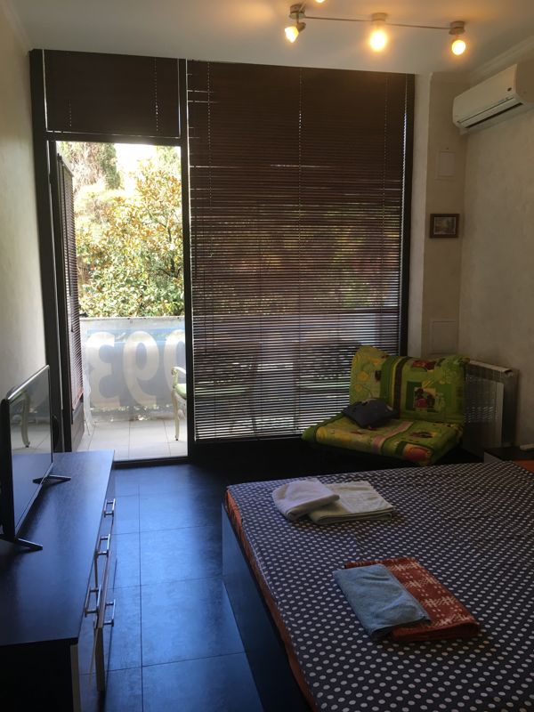 Апартаменты с полностью открытым балконом . Вид на сад. Кровати: 2 спальная кровать или 2 односпальных . Опционально возможно дополнительно предоставить : 1 спальное кресло- кровать. Санузел : душевая кабина, раковина, туалет . В апартаментах есть чайник , холодильник , микроволновая печь.