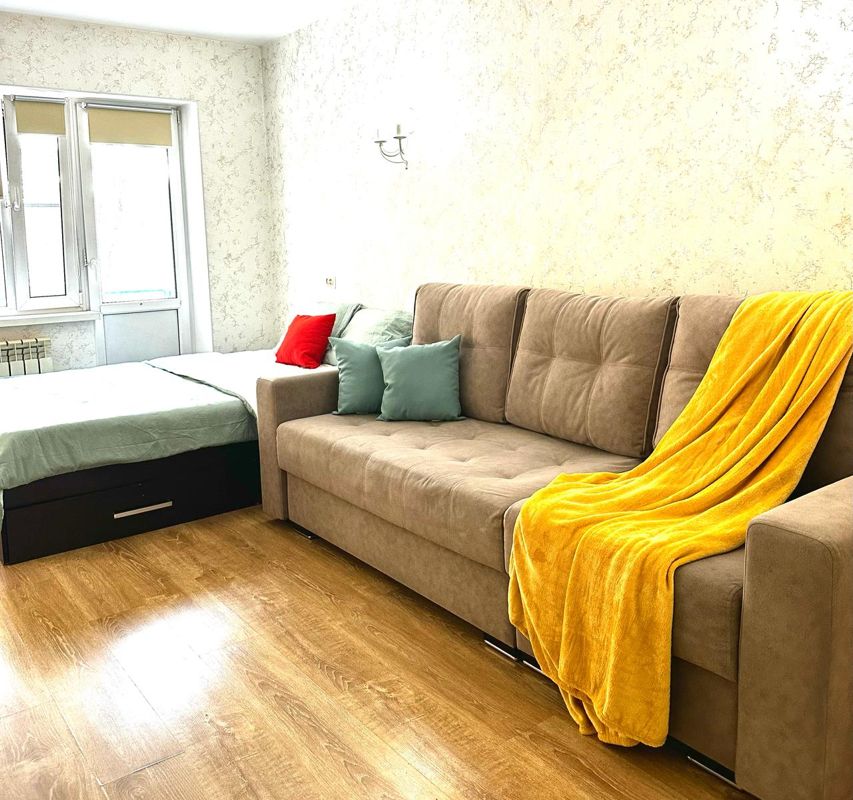 Квартира оснащена всем необходимым для комфортного проживания: В комнате большая двуспальная кровать с ортопедическим матрасом, которая обеспечит вам крепкий здоровый, свежее ароматное белье. Наличие дивана обеспечит дополнительным спальным местом ребенка или коллегу, если вы путешествуете по работе. Шкаф для вашей одежды, в нем же вы найдете гладильную доску и утюг.