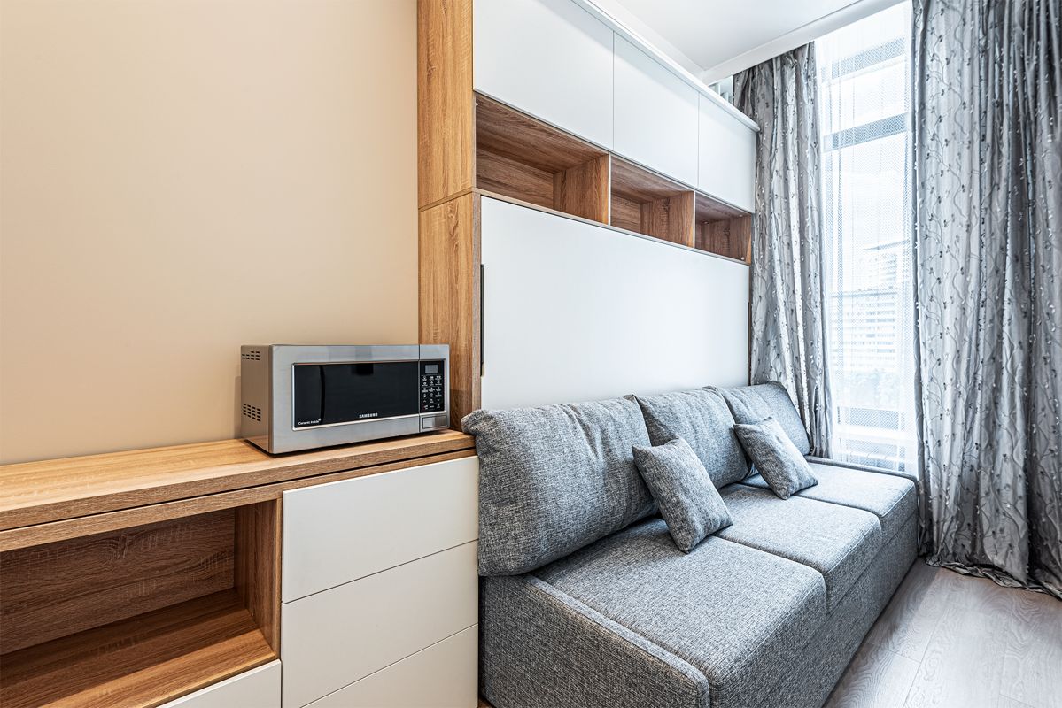 Эта студия площадью 15 м² полностью меблирована и оснащена всем необходимым для комфортного проживания — от краткосрочной аренды на сутки до недели.