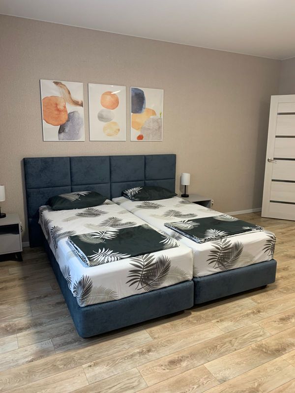 Студия с 3 спальными раздельными местами. Двуспальная кровать она же и разбирается на две односпальные кровати , очень удобный матрас и кресло раскладное.