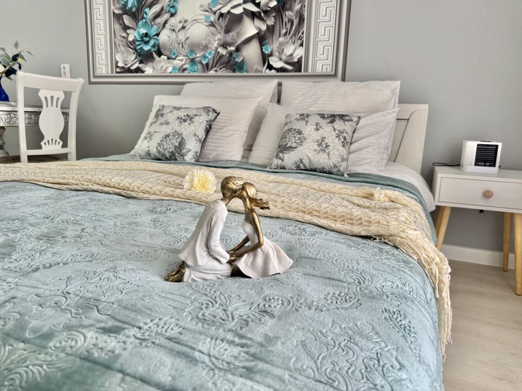 В апартаментах есть вайфай, большой телевизор с диагональю 55дюймов и кабельным тв, стиральная машина, микроволновая печь, электрочайник, холодильник.