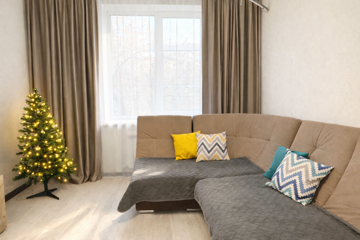 В квартире всё новое: мебель, техника, посуда, текстиль.