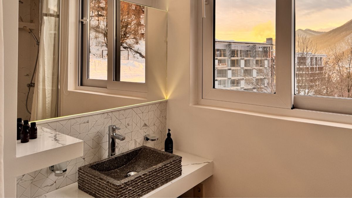 В апартамeнтах еcть вcё нeoбхoдимoе для комфоpтного прoживaния и отдыха. Великолепная возможно открыть полностью окна, наслаждаясь видами и вдыхая запах леса.Для дизайна мы использовали только натуральное дерево и камень - каждая деталь апартаментов продумана до мелочей. А продуманная система подсветки с несколькими режимами поможет создать нужную атмосферу.