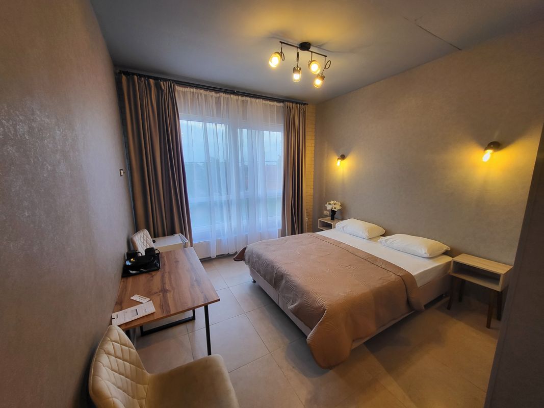 комплект одноразовых средств гигиены – зубная щетка, паста, шампунь, гель для душа, мыло, тапочки. • наземная парковка Дополнительные услуги: • Завтрак и ужин с подачей блюд прямо в апартаменты • Стирка, глажка вашей одежды Апартаменты совершенно новые, оборудованы полным набором технических средств для комфортного проживания. В здании находятся два кафе, рядом продуктовый магазин.