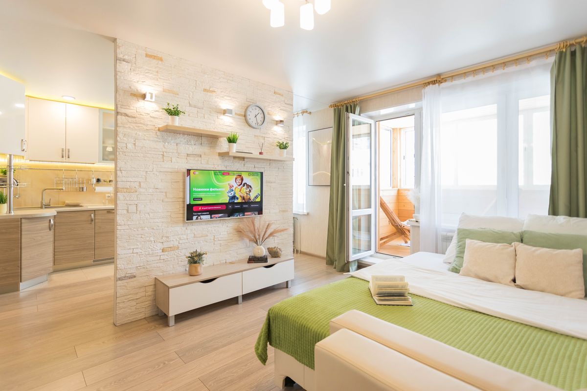 Став нашими гостями, вы получите укомплектованную квартиру в эко-стиле, со всей необходимой мебелью и бытовой техникой, посудой, чистым бельём, полотенцами и туалетными принадлежностями.