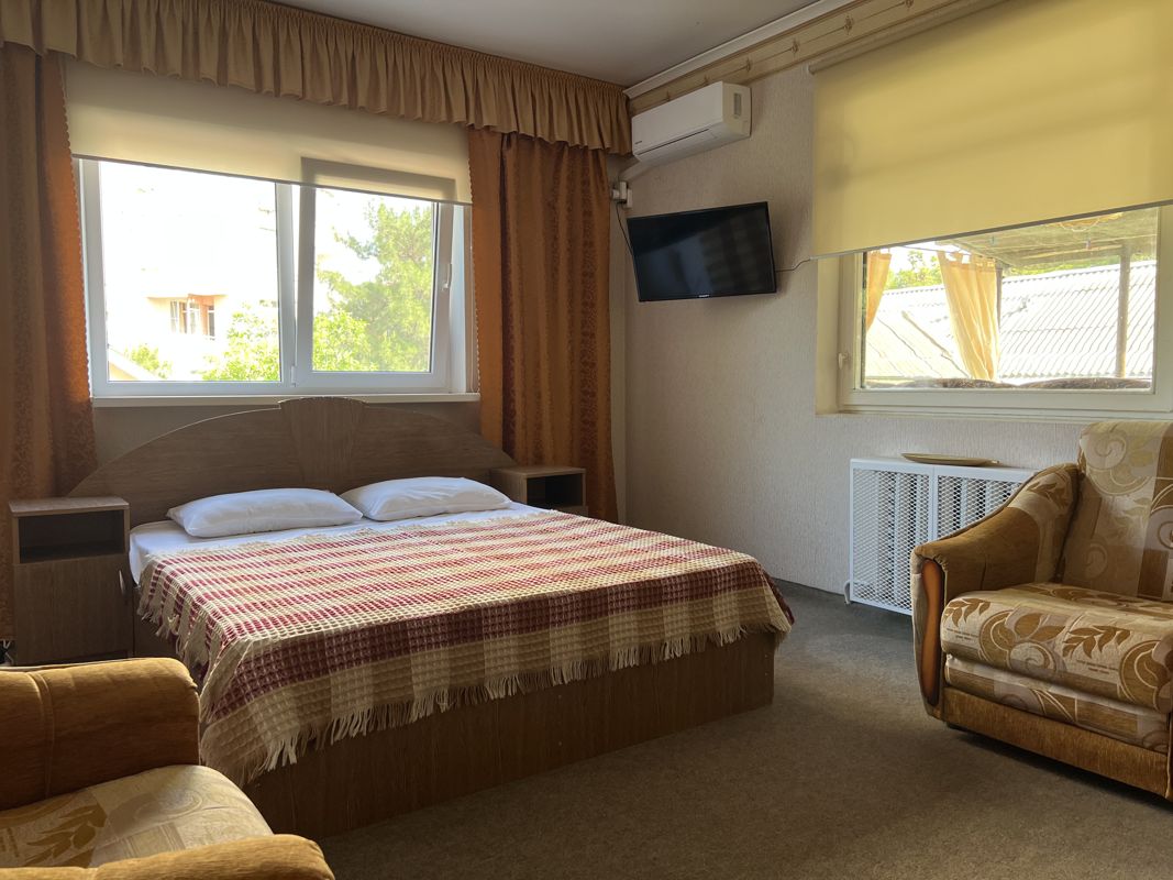 • Просторный зал — двуспальный раскладной диван, две односпальные кровати, ЖК-телевизор