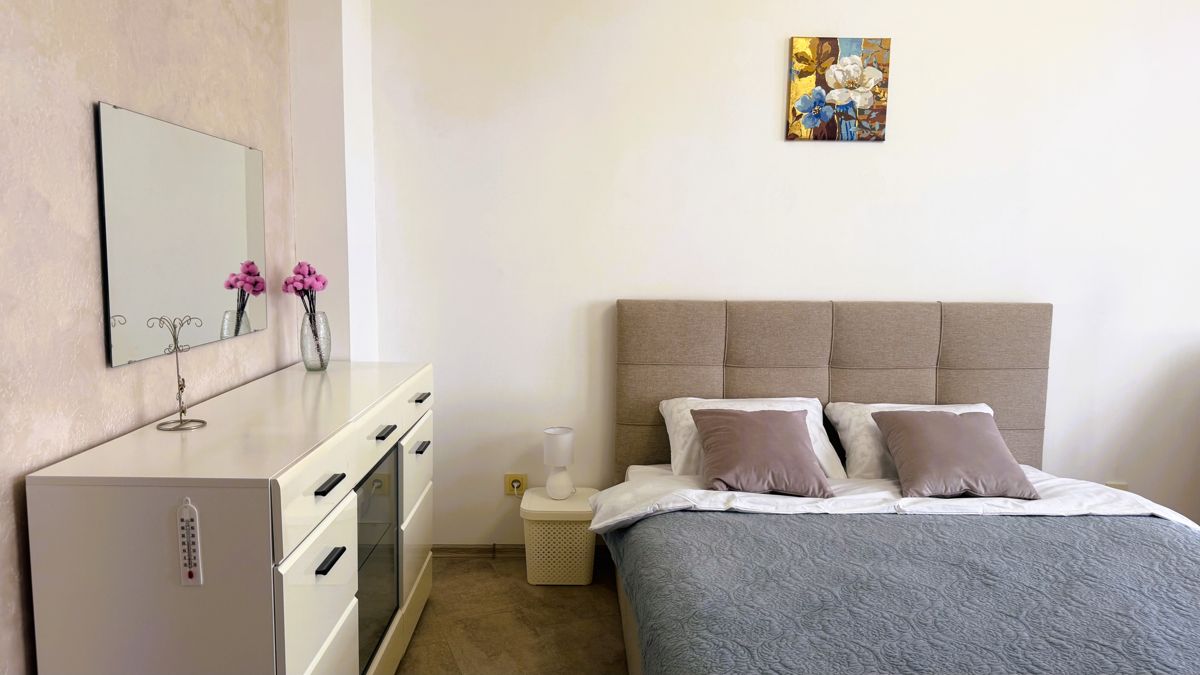 - Двуспальная кровать с ортопедическим матрасом и большо;