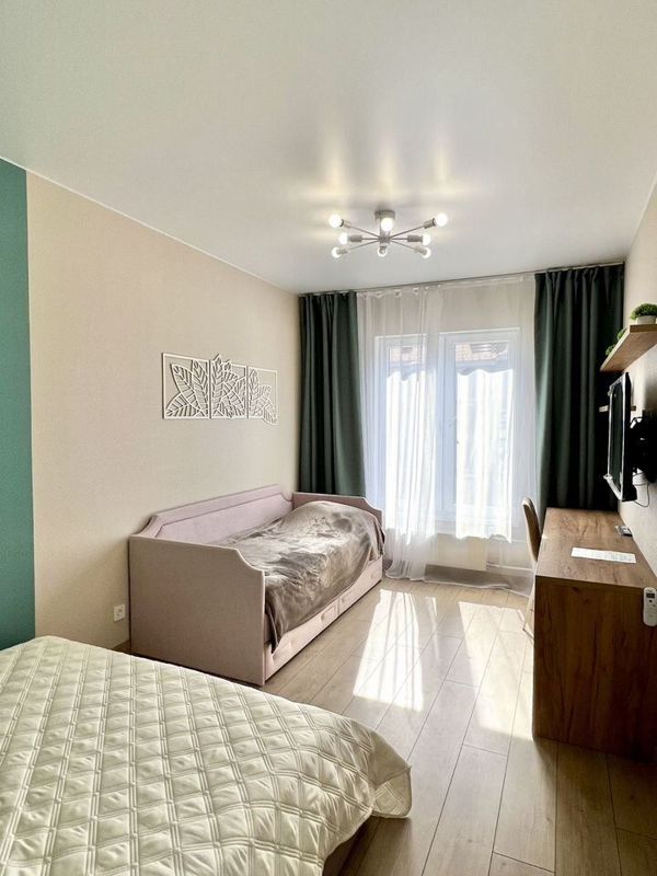 Комплектация: в спальне 2хспальная кровать + 1спальная кровать, на кухне-гостиной 1,5спальный диван