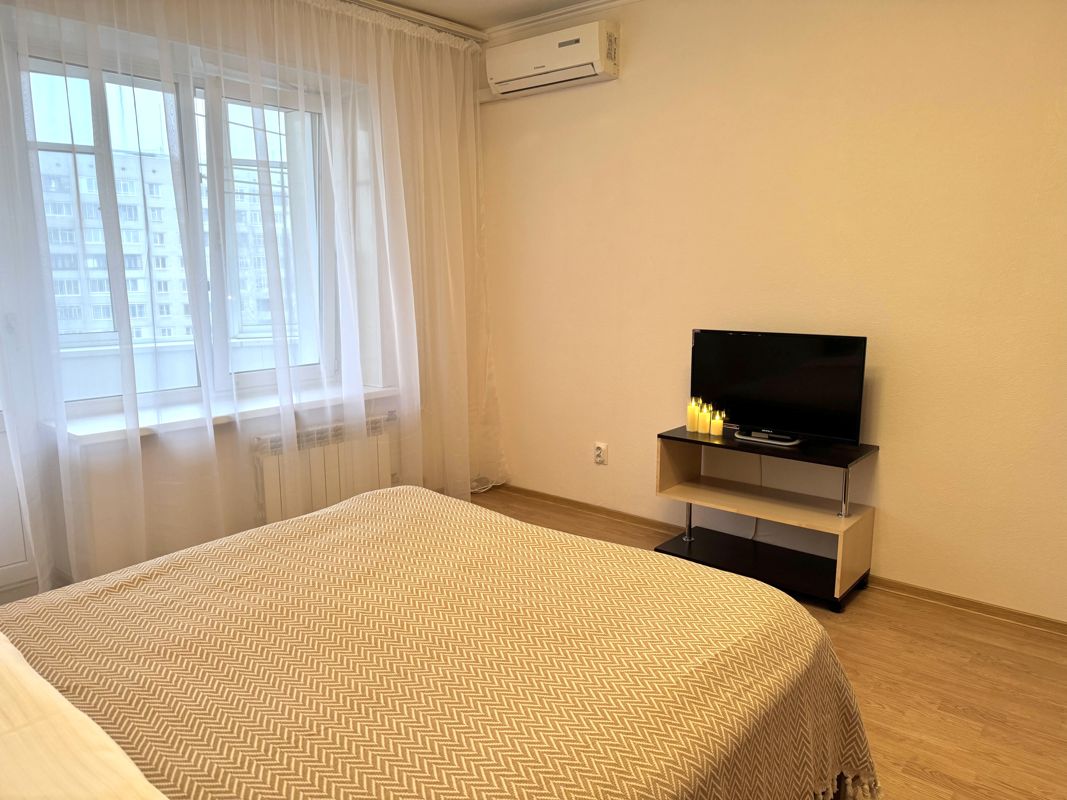 ✅ В главной спальне расположена двуспальная кровать, вместительный шкаф, телевизор, балкон.