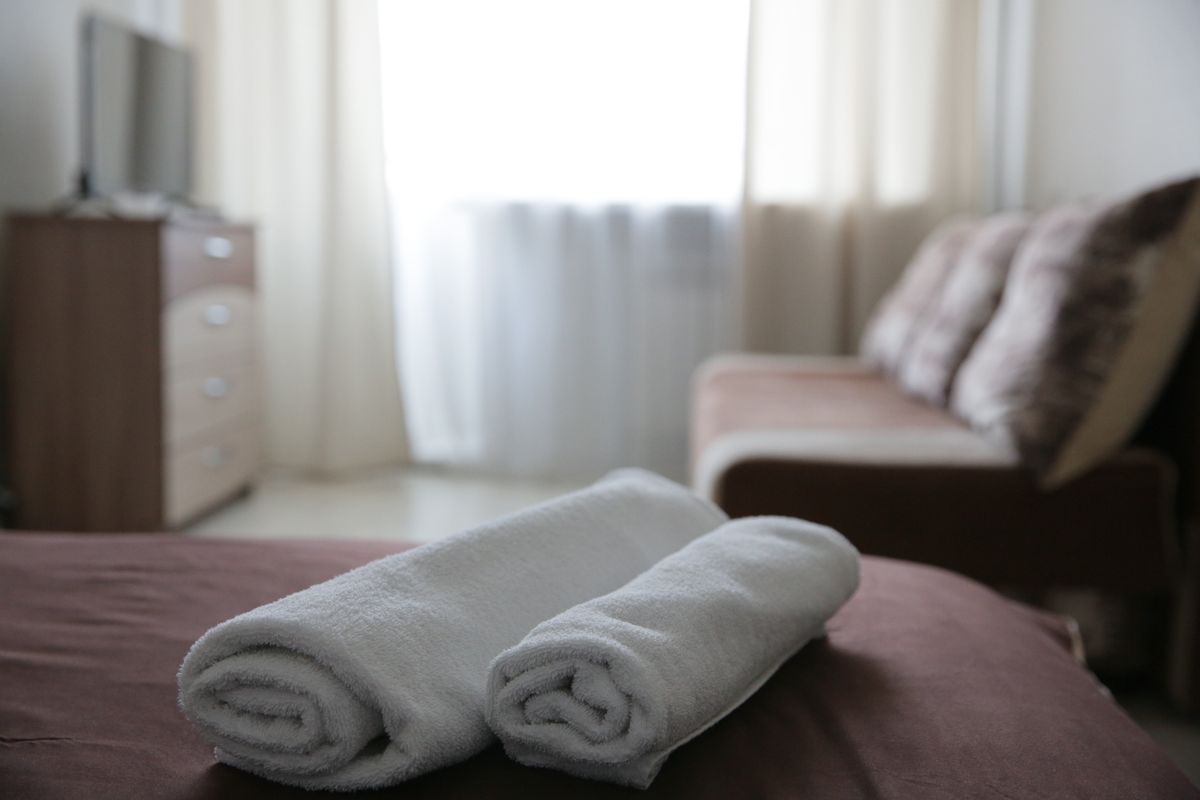 • Большая двуспальная кровать с качественным постельным бельем, матрасом и подушками, обеспечивающими здоровый и комфортный сон.