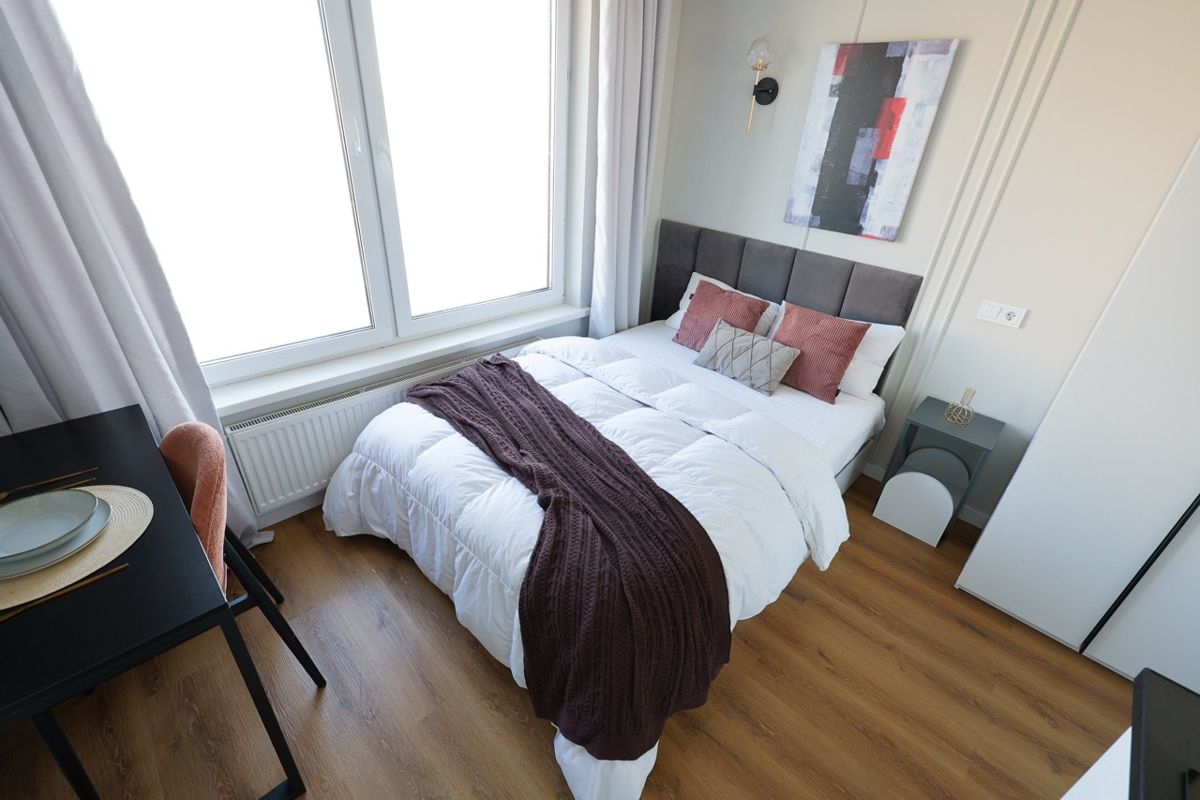 Стильная уютная студия в ЖК "Мята". Большие окна. Качественная дорогая мебель и техника. Интерьер продуман до мелочей. Апартаменты, откуда не хочется уезжать.