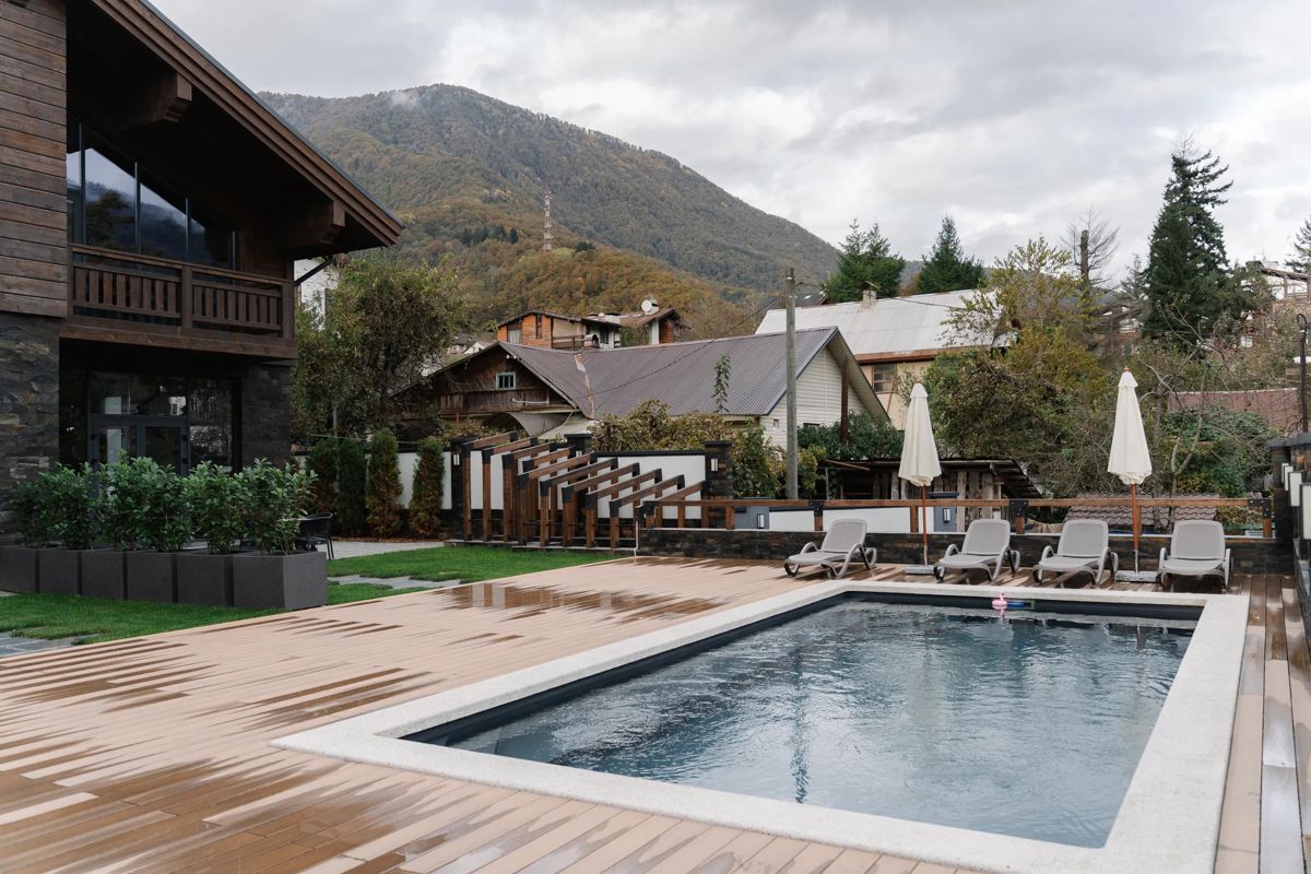В самом центре Красной Поляны в окружении гор находится уютное шале «Легенды Поляны». Закрытая территория, парковка на 3 машины, бассейн с подогревом, шезлонги, зонты, уличные столы и стулья.