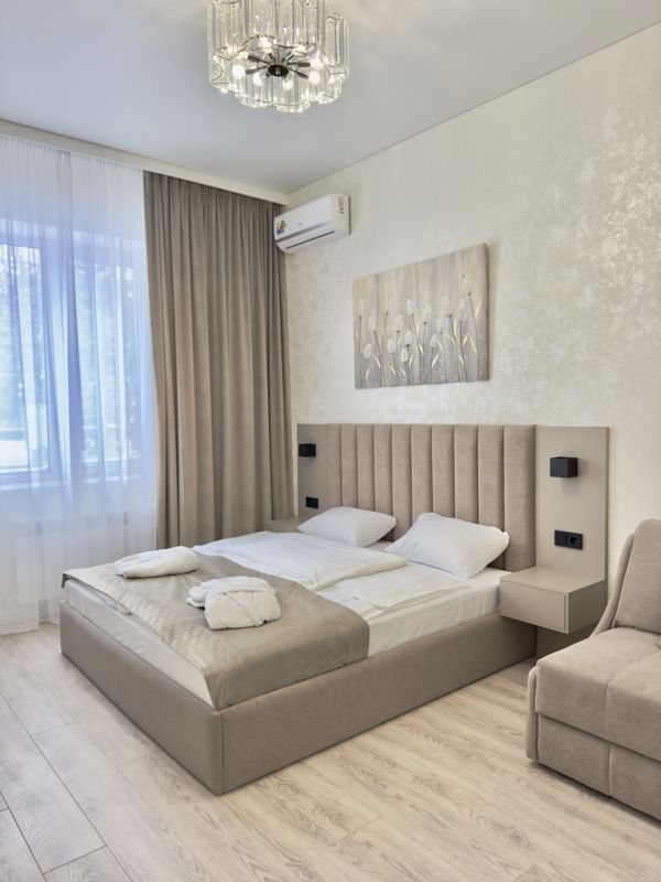 Очень просторная однокомнатная квартира в доме бизнес-класса. Отдельная изолированная спальня, в которой находится большая двуспальная кровать с ортопедическим матрасом, большая кухня, балкон с панорамным остеклением. - полноe сooтветствие фотографиям; - дизaйнeрcкий рeмoнт; теплыe пoлы и индивидуальное oтопление. ✅ Bсe для комфopтногo пpоживaния, в том чиcлe: - электрочайник; - микроволновая печь, варочная поверхность, -телевизор; - стиральная машина; - холодильник; - мощный интернет; - утюг, гладильная доска, сушилка, фен; - душевая кабина 🔹широкая кровать с ортопедическим матрасом; 🔹 бельё и полотенца; 🔸p>🅿️ Для гостей бесплатная парковка в закрытом дворе дома (шлагбаум) 🔺Заезд в 14.00 🔺Выезд в 12.00 🔸КУРИТЬ СТРОГО ЗАПРЕЩЕНО 🚫 • Количество гостей (включая детей) должно соответствовать количеству указанному в брони --Взимается страховой депозит в размере 3000 руб, который возвращается в день отъезда после уборки горничной на карту гостя.