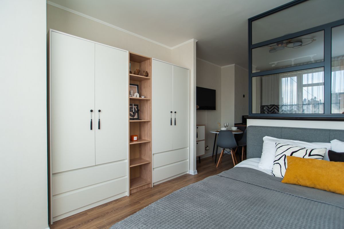 Большая спальня с мягкой двуспальной кроватью и ортопедическим матрасом, с чистым выглаженным хлопковым бельем обеспечит вам крепкий и восстанавливающий сон!Большой вместительный шкафи туалетный столик создадут идеальные условия для хранения ваших вещей и ухода за собой.