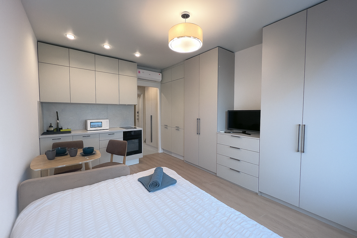 Современная, светлая квартира-студия посуточно в Москве — идеальный вариант для комфортного отдыха, командировки или романтических выходных!