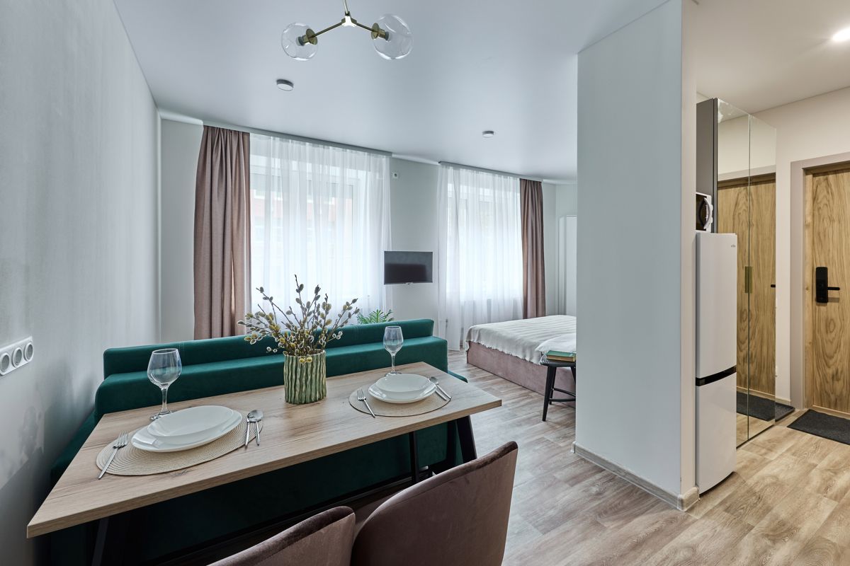 Каждая студия volgaapart выполнена в своем уникальном дизайне. Современное стильное оформление деликатно отсылает к образам знаменитых нижегородцев, прославивших свой город.