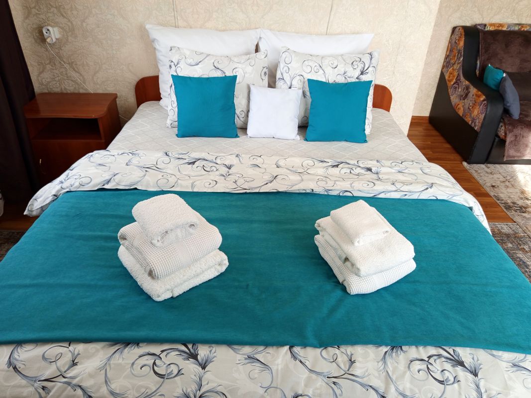 Спальное место большая кровать 160/200, удобный матрас, спать всегда комфортно на нем и диван для одного гостя 120/200, постель всегда заправлена,есть дополнительно пледы, полотенца предлагаю по несколько штук.