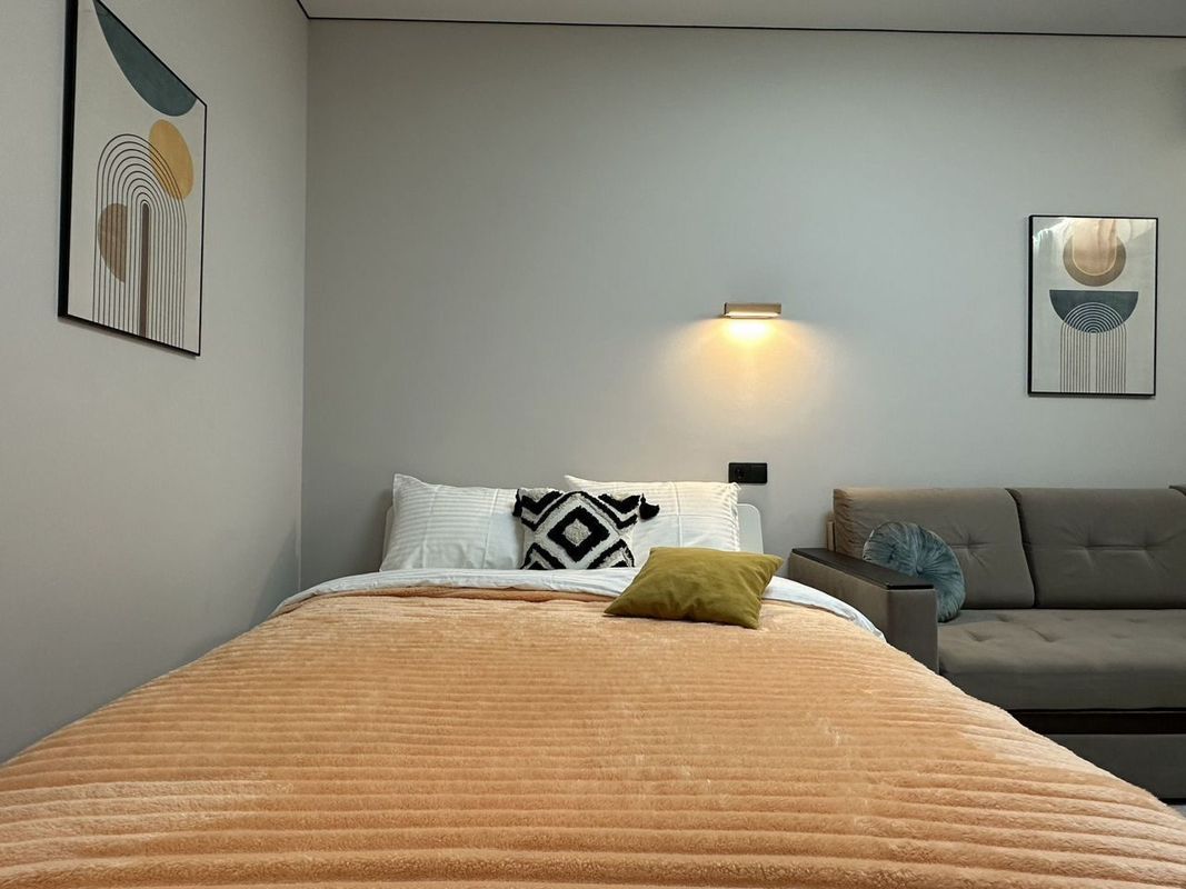 В квартире имеется душевая кабина с тонированными закалеными стеклами, полотенца, тапочки, принадлежности гигиены, диван 140×220, кровать 140×200 с ортопедическим матрасом и чистым глаженным бельём премиум качества : страйп Сатин , телевизор, стиральная и сушильная машина, гладильная доска , сушилка,утюг, Wi-Fi. На кухне гарнитур с встроенной эл плитой, духовкой, вытяжкой , холодильник с морозильной камерой. Есть посуда и кухонный инвентарь.