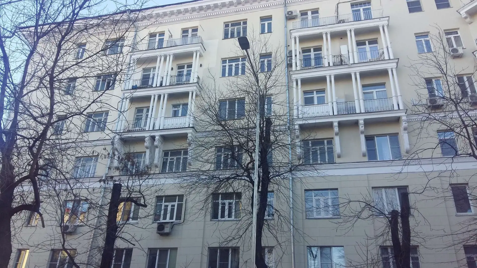 Просторные апартаменты в сталинском доме с высокими потолками и окнами в зелёный двор. Закрытая территория, охрана и ощущение приватности.