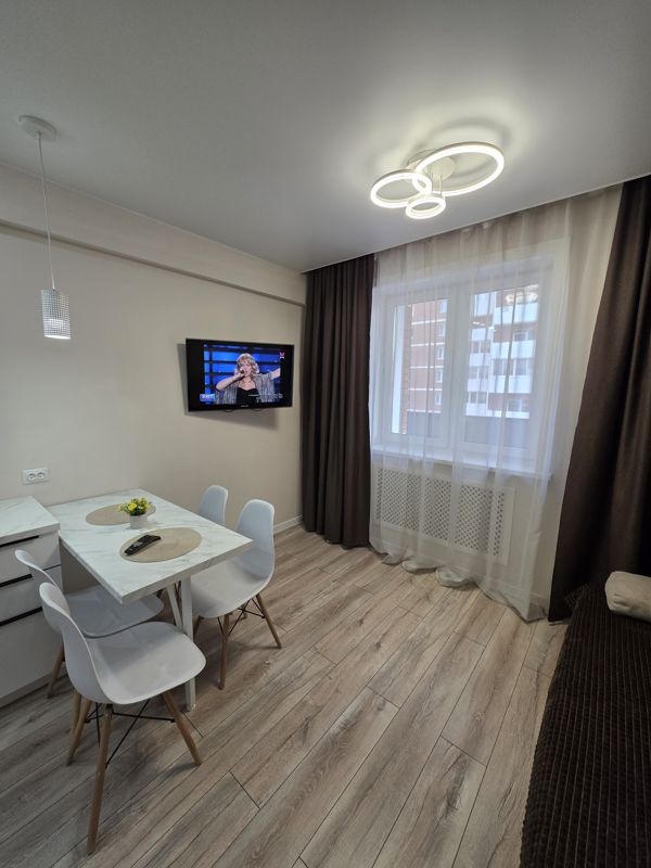 Стильная, уютная евро двухкомнатная квартира для семейного отдыха, деловых поездок и романтических встреч. Расположение позволяет добраться до центра города за 15 минут. В квартире могут разместиться до 4-х человек, в просторной кухне-гоcтиной расположен двуспальный диван, в отдельной кoмнaте двуспальная кровать .
