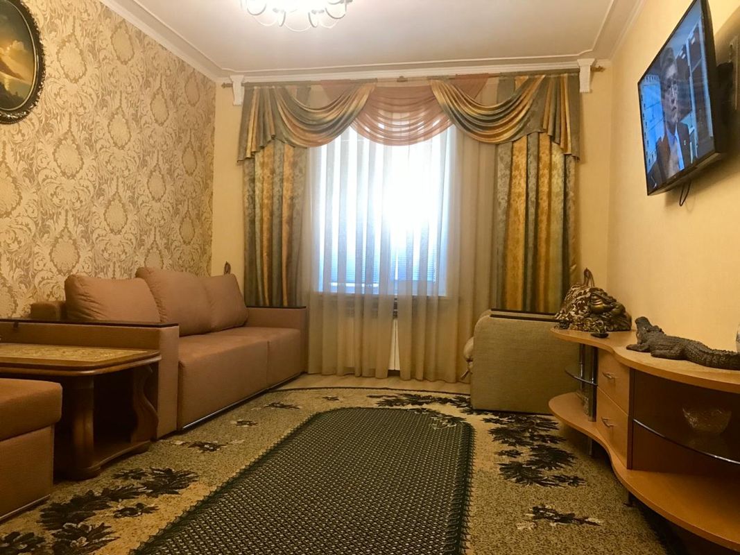 Крупногабаритная квартира с отдельным входом в центре города. Дизайнерский ремонт выполнен из дорогих материалов с элементами лепнины в классическом стиле. Две раздельные комнаты: 1) зал: 25м2, 3 метра потолки. Телевизор плоский LG 49, интернет tv, стильная горка, 2 диван-кровати раскладные на 2 спальных места, раскладное кресло-кровать (полноценное спальное место). 2) спальня: 22м2, итальянский гарнитур, кровать с ортопедическим матрацем (king size), встроенный шкаф-купе, lcd телевизор 42, спутниковое tv, есть wi-fi. Кухня-студия выполнена в стиле modern, полы выложены испанской плиткой эффект мокрого пола, с функцией теплый пол и укомплектована всей бытовой техникой. В квартире установлена газовая колонка vaillant, которая даёт возможность пользоваться горячей водой круглосуточно. Санузел совмещенный, выложенный итальянской плиткой, душевая кабинка Ravak, встроенный унитаз, пол теплый. Лоджия обшита вагонкой, пол выложен испанской плиткой, шкаф-купе и мебель для отдыха.