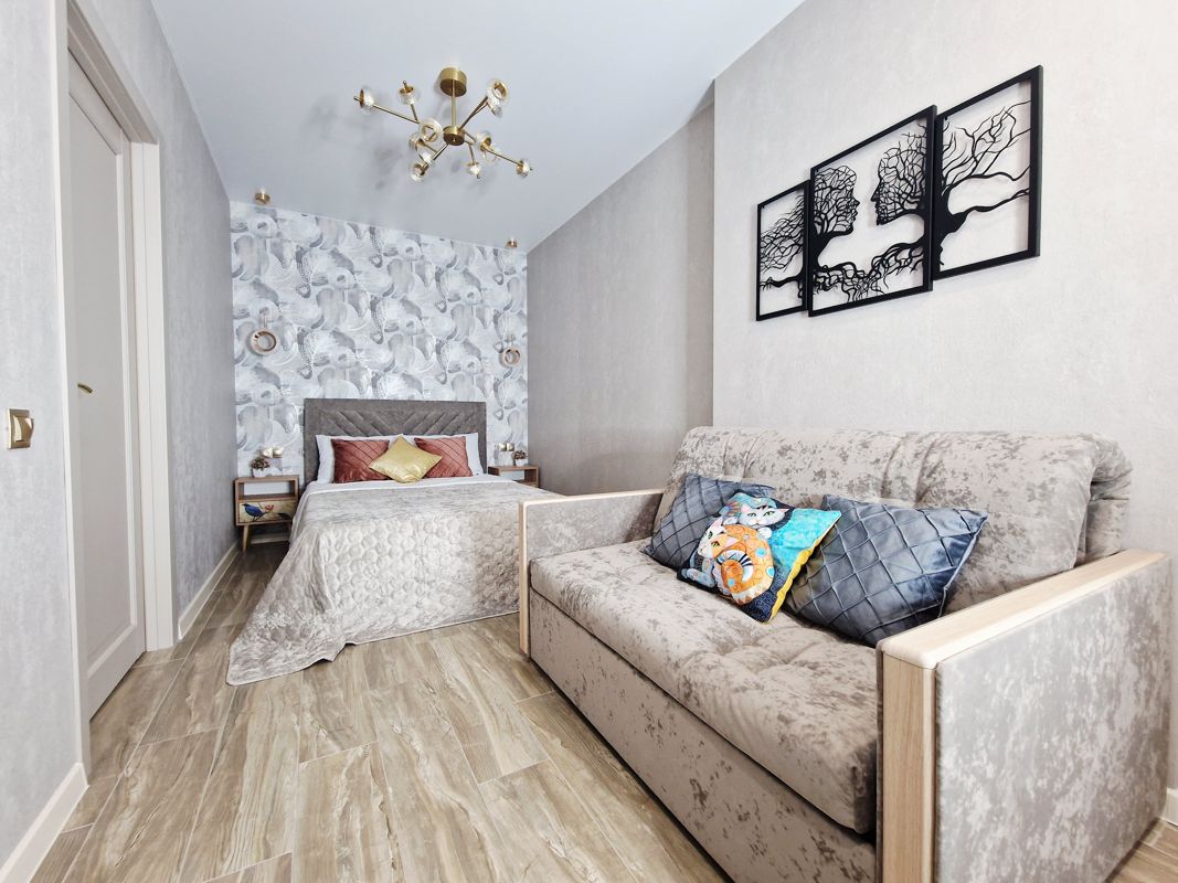 Представляем вашему вниманию комфортабельные евродвухкомнатные апартаменты площадью 40 м² в современном жилом комплексе. Квартира выполнена в современном стиле с использованием качественных материалов. Эргономичная планировка и продуманное зонирование создают атмосферу домашнего уюта. Количество комнат: 2 (изолированная спальня и просторная гостиная, совмещенная с кухонной зоной). Вместимость: до 6 человек (есть двуспальная кровать и раскладывающийся диван в спальне, а также раскладывающийся диван в гостиной).