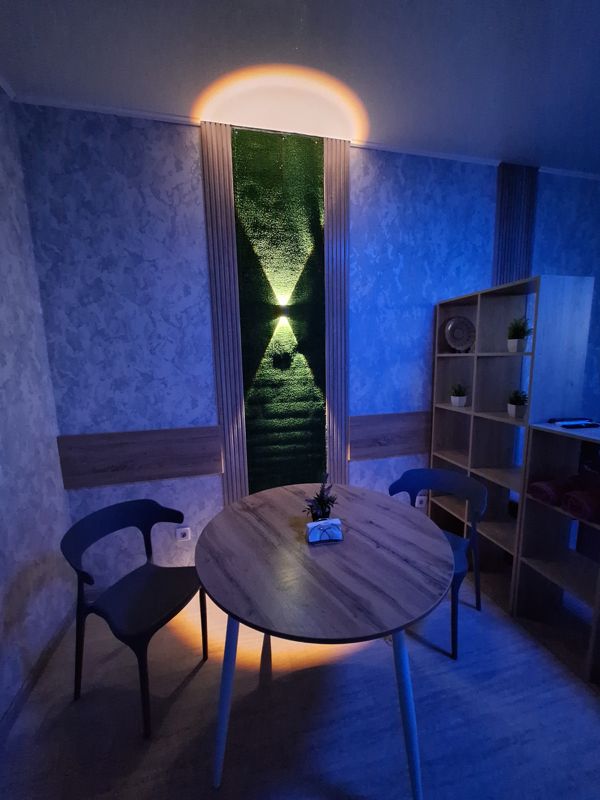 - Оборудованная кухня ( электрическая плита, микроволновка, электрочайник, холодильник)