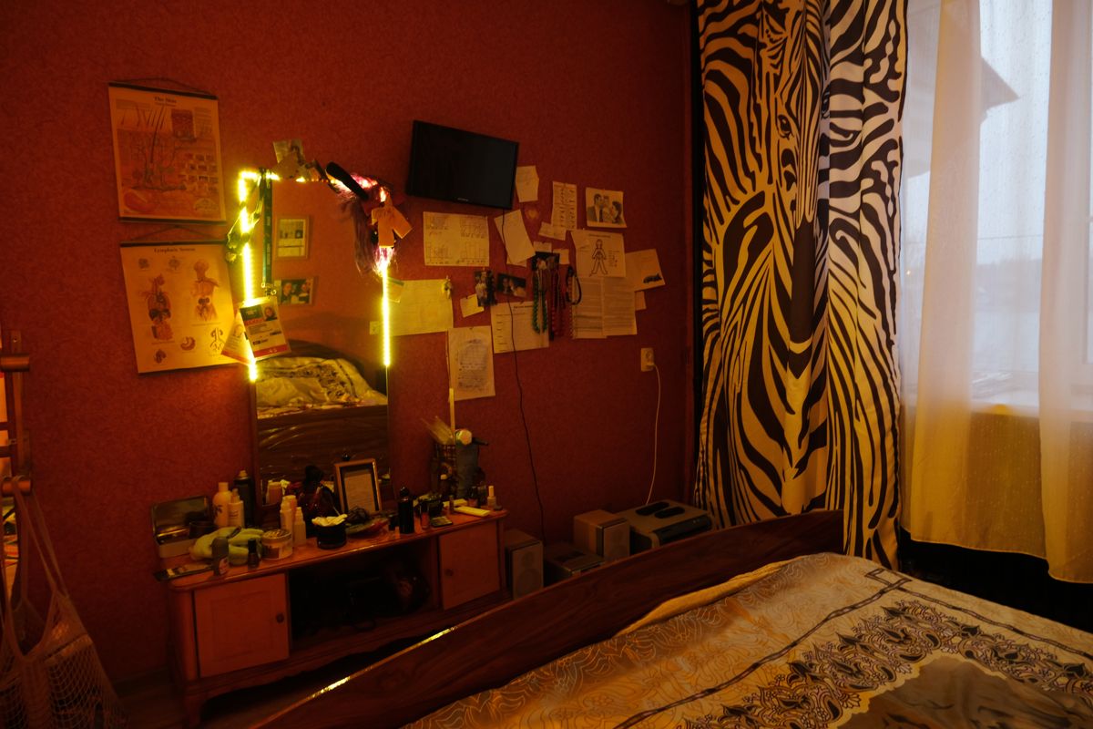 Квартира находится в одной из самых красивых исторических построек города, ультрамариновом доме, которому ельчане придумали название Pentagon. Сталинка эпохи ампира построена пленными немцами по соседству с еще одним архитектурным шедевром Ельца, Детской школой искусств 3. Огромная площадь комнаты и кухни позволяет ничем не уступать любой 2шке в панельном доме или новострое. Ширина подоконников в "сталинке" чуть менее полуметра, что говорит о двойной кирпичной кладке, поэтому дом долго прогревается и долго остывает.