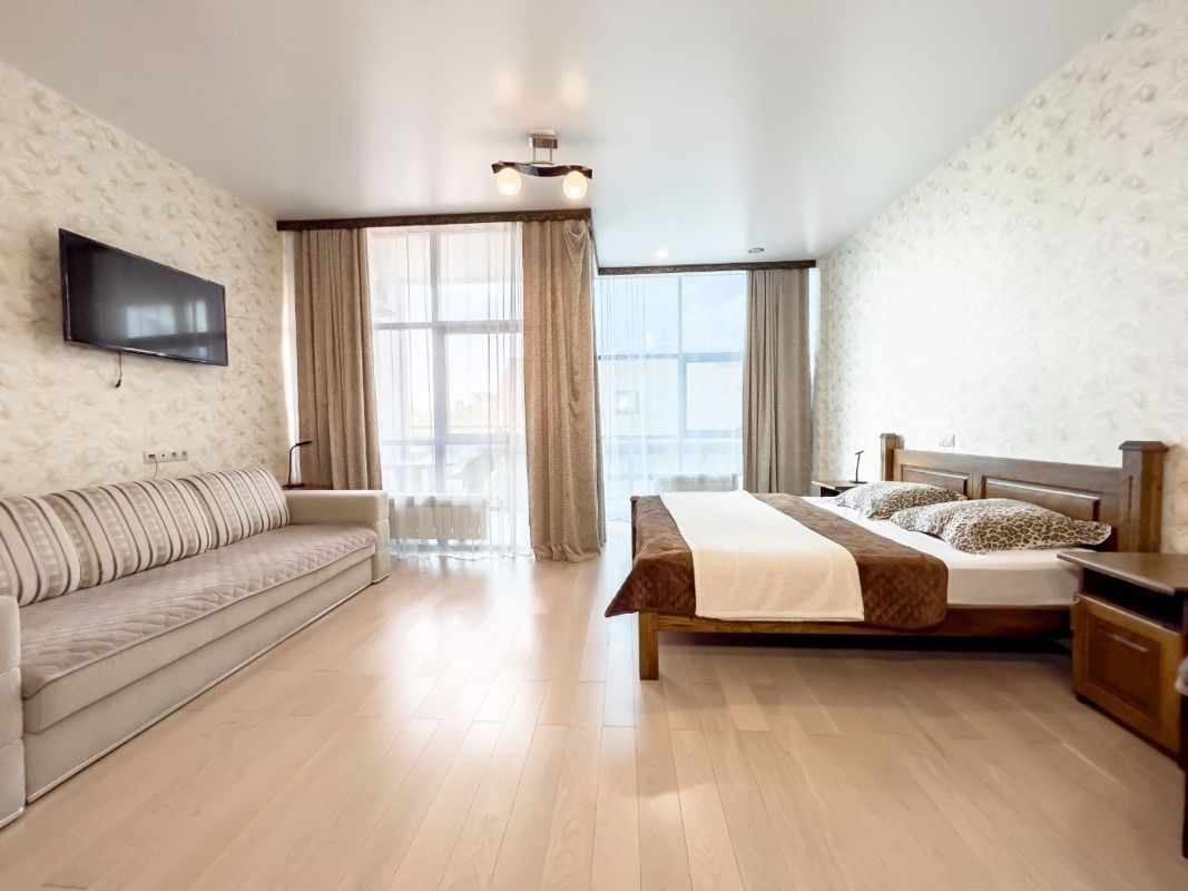 В квартире есть всё для вашего комфорта: увеличенная двуспальная кровать, уютный двухспальный диван и просторная ванная комната.