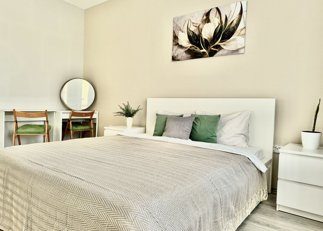 ✅ 2 спальных места (2-спальная кровать и раскладной диван);