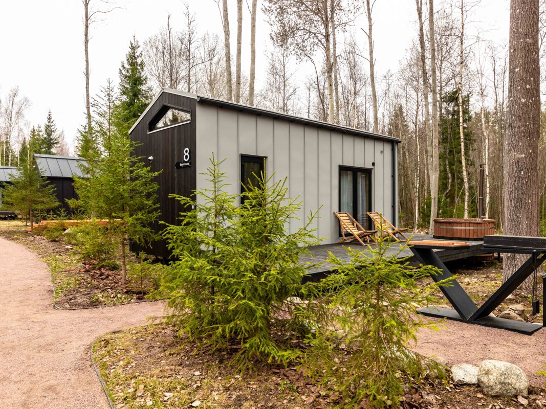 Дом-студия 24м с панорамными окнами с видом на хвойный лес.