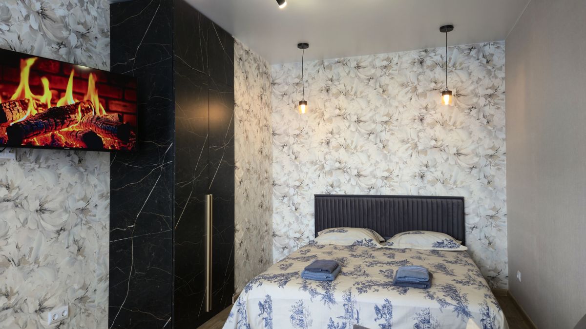 Двухспальная кровать с ортопедическим матрасом, двуспальный диван, стиральная машинка, кухонная зона, телевизор, Smart TV, холодильник, плита, микроволновка, чайник, посуда, утюг, гладильная доска, сушилка для белья, фен, безлимитный Wi-Fi.