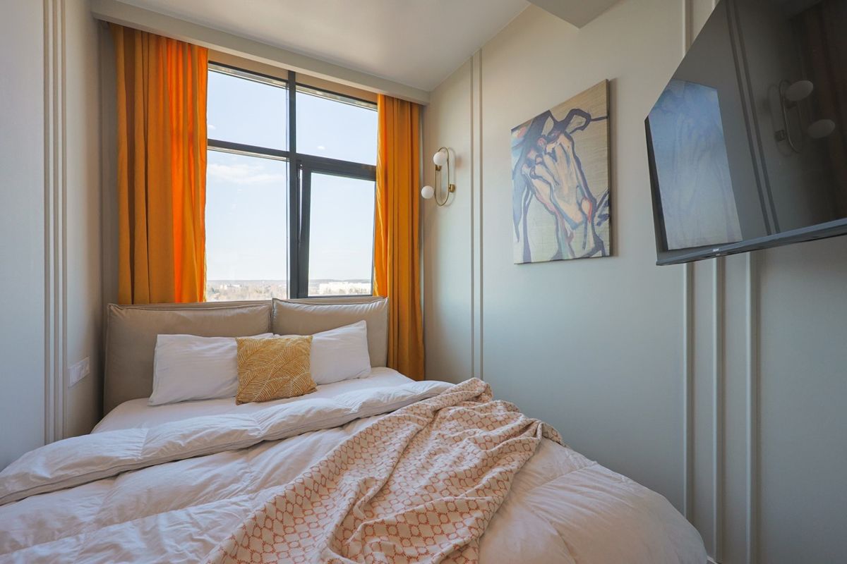 Современная студия в ЖК Sky Skolkovo. Большие окна. Качественная дорогая мебель и техника. Интерьер продуман до мелочей. Апартаменты, откуда не хочется уезжать.