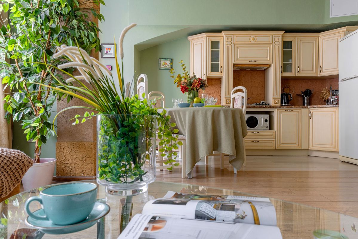 -✅В закрытой совмещенной гостиной с кухней( два раскладных дивана(возможно спать по 2 не тучных чел. на одном ).