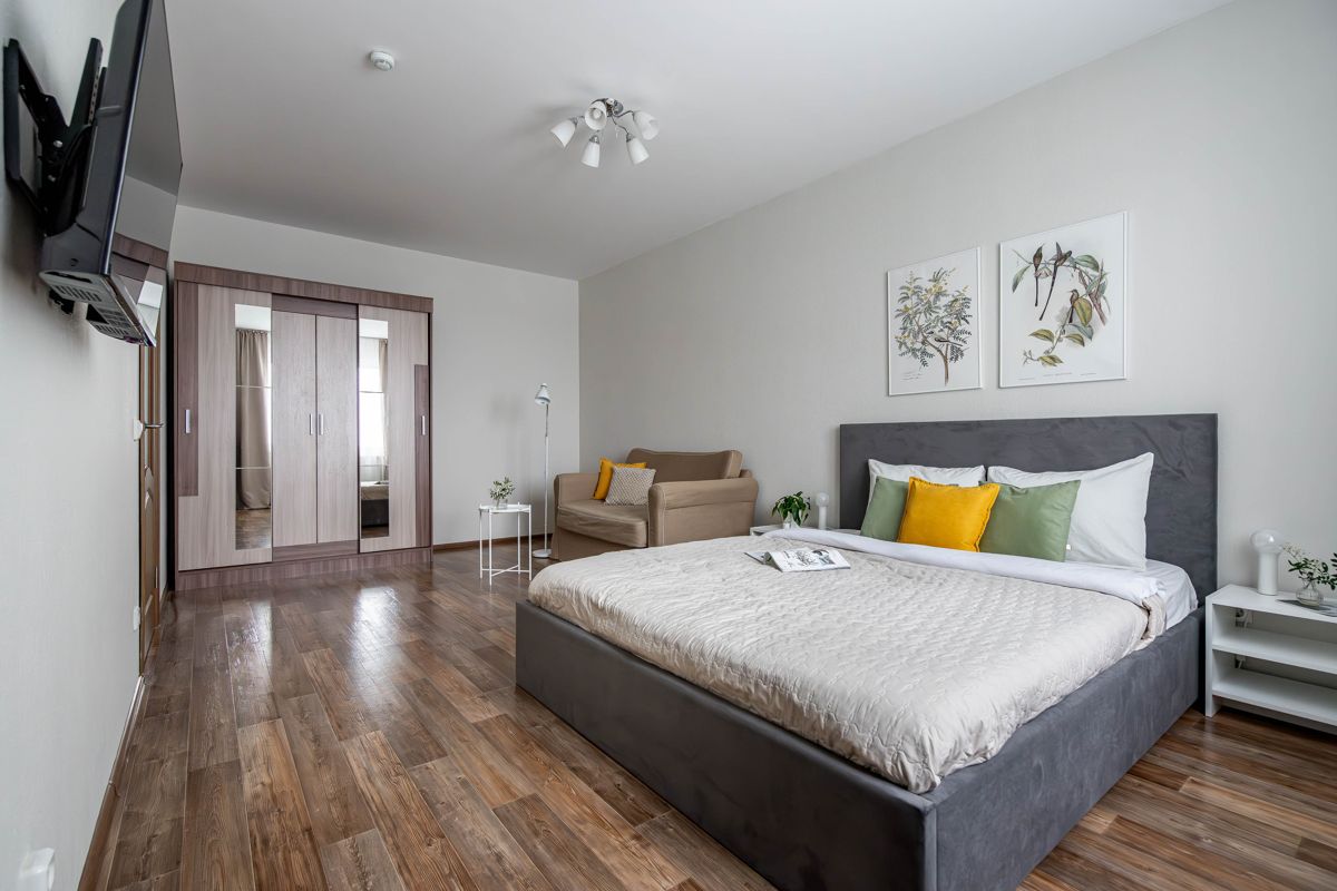 🌿Стильная евро-двухкомнатная квартира (однокомнатная квартира с кухней-гостиной) вблизи метро Лесная. Спальные мест для 5 гостей (кровать и 2 дивана). Есть балкон!