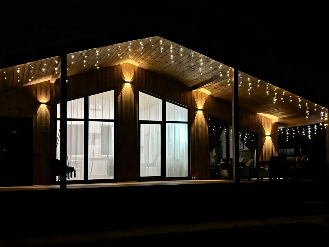 · Вечером включаются мягкие светодиодные ленты — атмосфера ресторана под открытым небом.