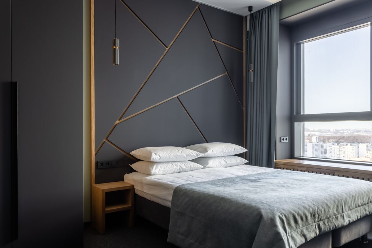 «Матч Поинт», который можно снять посуточно в Москве для комфортного проживания. Из панорамных окон открывается восхитительный вид на парк Фили и живописную панораму Москвы! Площадь студии 36 кв. м делает эти апартаменты на сутки у парка Фили идеальным выбором как для деловой поездки, так и для романтического отдыха. Пространство организовано с учетом всех потребностей гостей — здесь есть удобная зона отдыха, полноценная кухня и рабочее место.