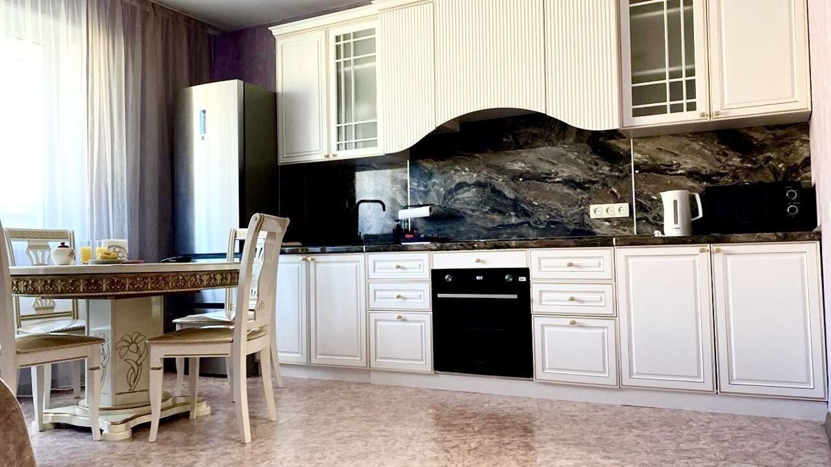 ✔️Просторная кухня оснащена всем необходимым: холодильник, варочная поверхность, микроволновка, чайник, посуда, столовые приборы и кухонные принадлежности.