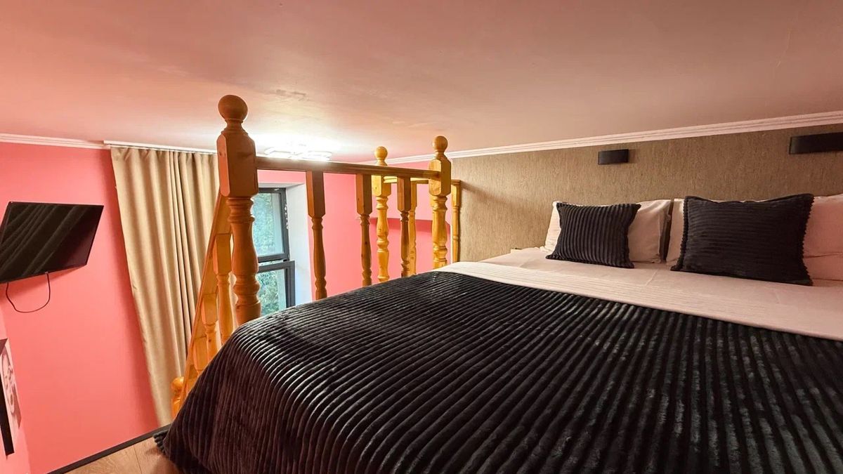 🪜Студия двухуровневая, кровать находится на втором уровне.