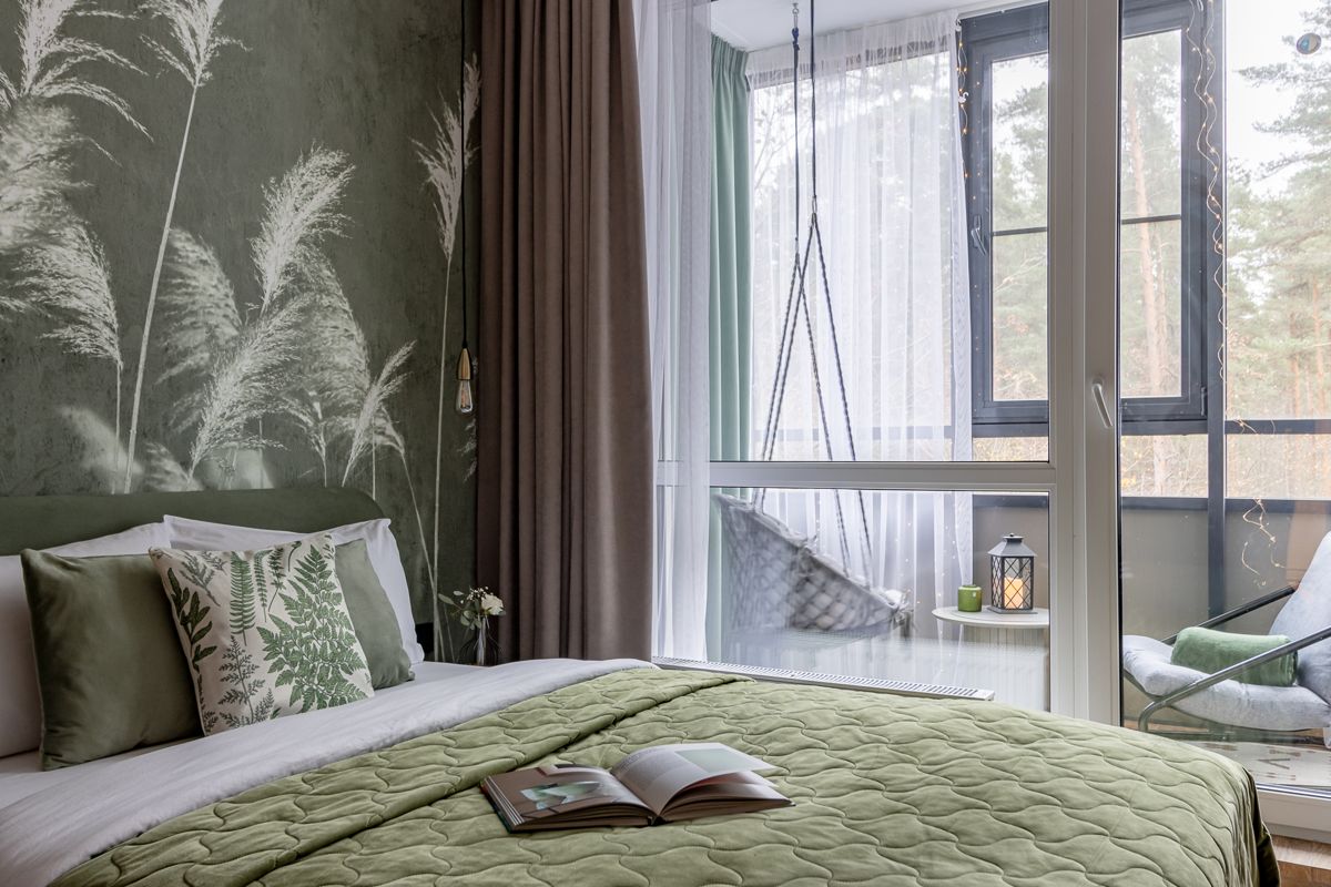 ⚪ Балкон с подвесной качелью и гирляндами станет сердцем квартиры — местом для утреннего кофе и вечерних разговоров.