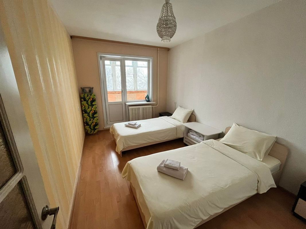 Двухкомнатная квартира улучшенной планировки, 52м2, с просторной оборудованной кухней, изолированные комнаты с двумя односпальными кроватями и диваном. До 5 спальных мест. В 5 минутах езды центр города, Администрация, центральная площадь, ЦУМ. В шаговой доступности супермаркеты, аптеки. Удобный выезд из города.