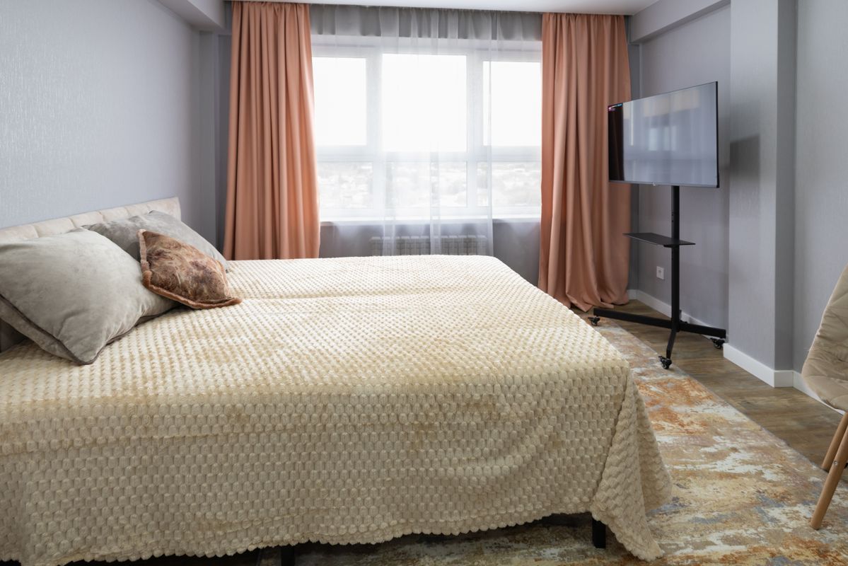 Смарт видовой номер в бежевых тонах. Зона прихожей. Душевая кабина, удобная двуспальная кровать, кухонный уголок, полностью оборудованный холодильником, свч печью, чайником. Есть уютный круглый столик для завтрака, где комфортно разместится два человека.