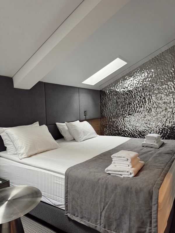 * Удобная кровать с прикроватной тумбой, оснащенной беспроводной зарядкой (не нужно искать провода!).