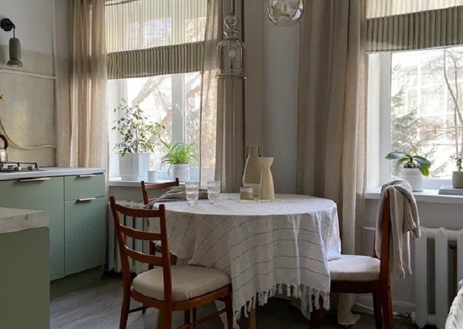 Просторная однокомнатная квартира в современном ЖК. На кухне: - Кухонный гарнитур. - Обеденная зона на 4 персоны. - Посуда: кастрюли, сковородки, тарелки, столовые приборы. - Бытовая техника: электрический чайник, микроволновка, плита, холодильник.